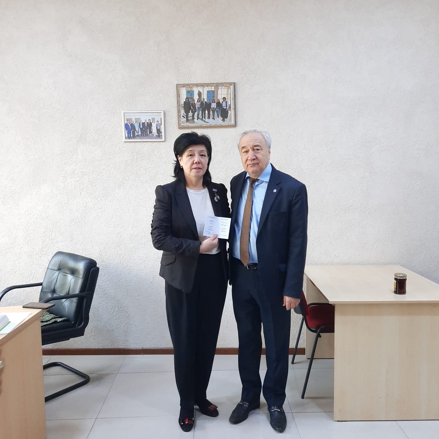 «Қазақстан Республикасының минералдық шикізатты кешенді қайта өңдеу жөніндегі ұлттық орталығы» РМК ғылыми техникалық компетенцияны дамыту басқармасының жетекші ғылыми қызметкері, техника ғылымдарының кандидаты, Қазақстан Республикасының тау-кен өнеркәсібі мен шахта құрылысын дамытуға қосқан елеулі үлесі, білікті кадрларды даярлауға белсенді үшін Қазақстан Республикасы Индустрия және инфрақұрылымдық даму министрлігінің ІІІ санатты «Кенші даңқы» төсбелгісімен марапатталды.