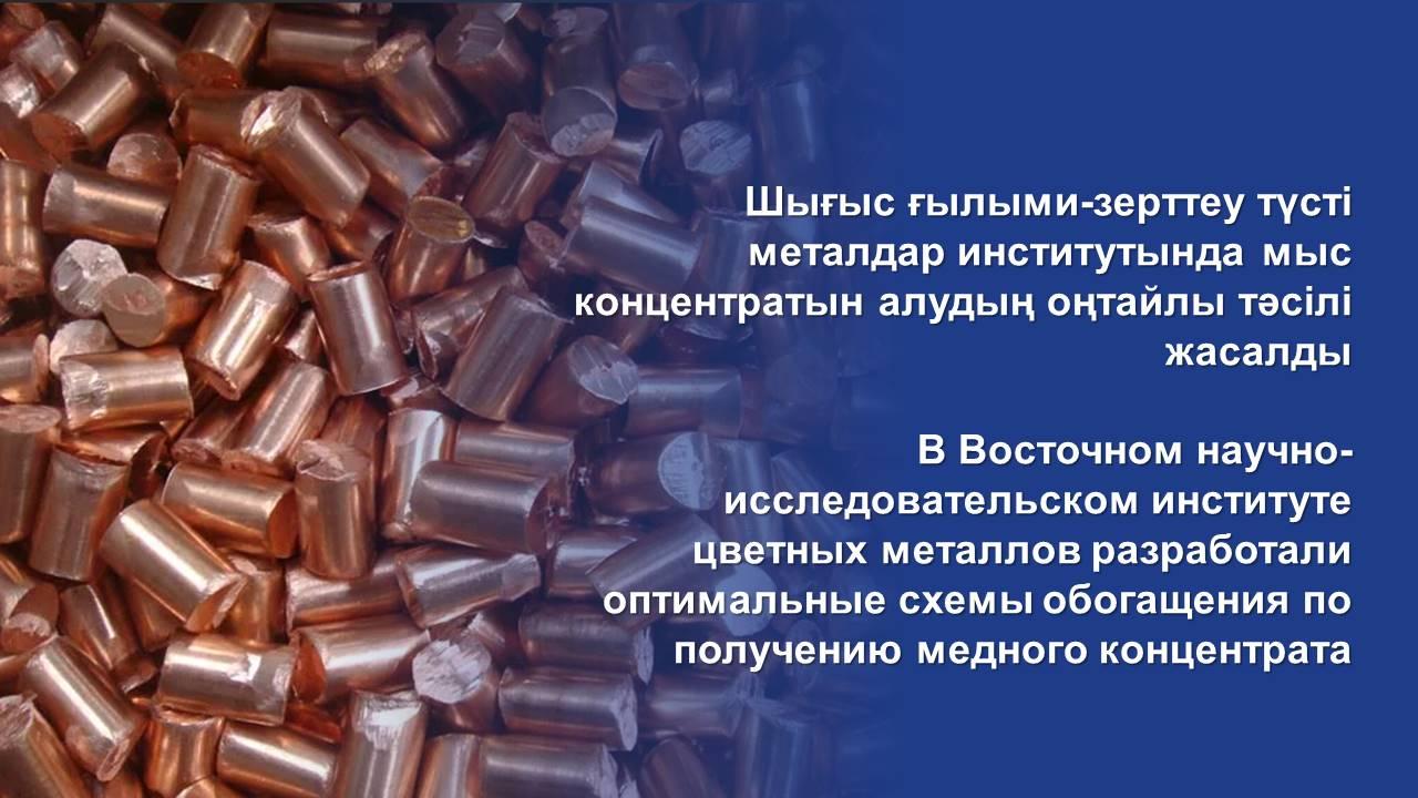 Шығыс ғылыми-зерттеу тау-кен металлургия түсті металдар институтының минералды шикізатты технологиялық сынау зертханасының ғылыми қызметкерлері мыс концентратын алу бойынша байытудың оңтайлы схемаларын әзірледі.